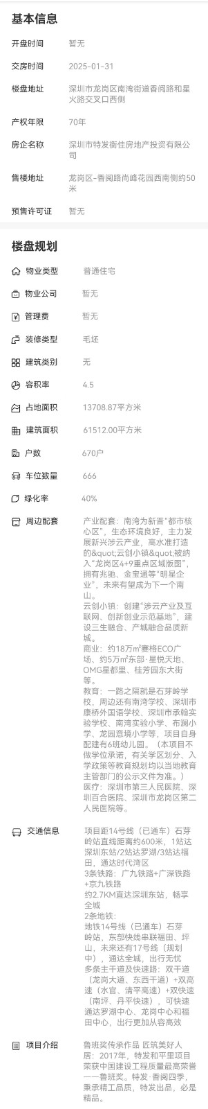 區域:深圳市龍崗區南灣街道香閱路和星火路交叉口西側
