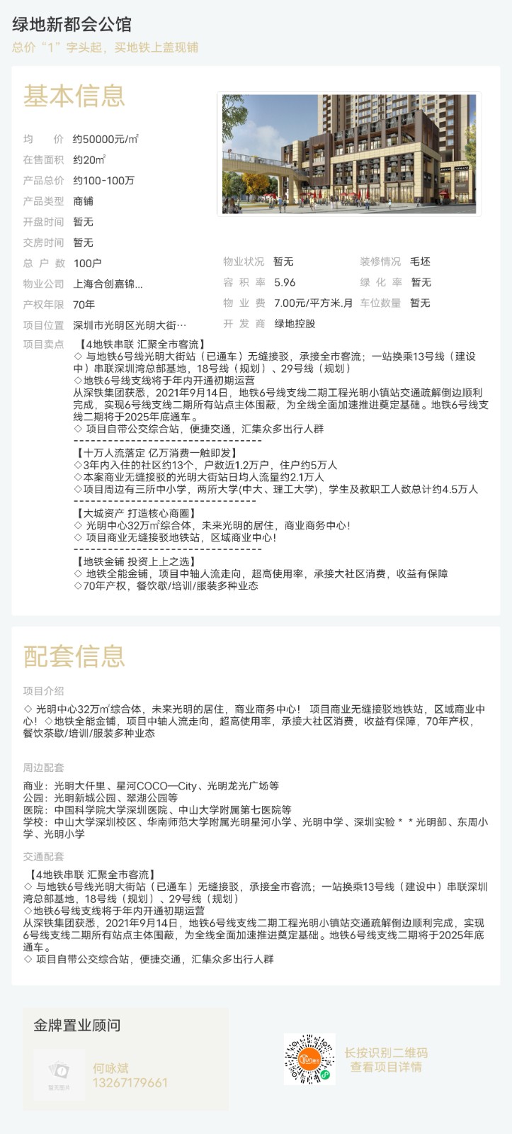 樓盤:綠地新都會公館物業類型:商鋪戶型:0室面積:約20-20平米總價:約100-100萬聯系人:何詠斌聯系電話:13267179661